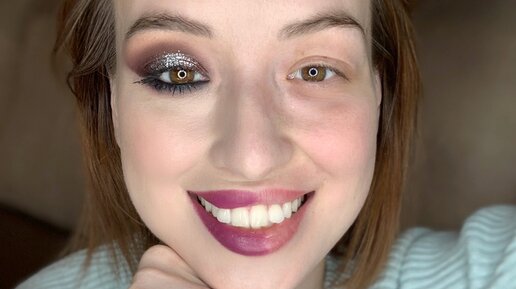 Блестящий серебряный макияж Яркие глаза Яркие губы Макияж для встречи Нового года Белого Металлического Быка