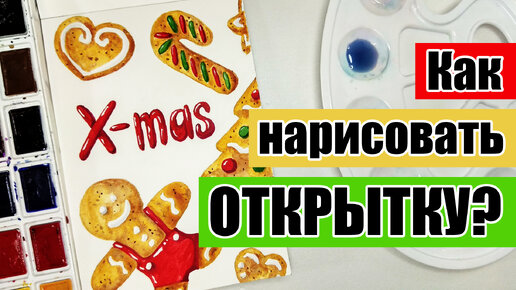 Как легко нарисовать красивую новогоднюю открытку? | Рисую имбирный пряник акварелью