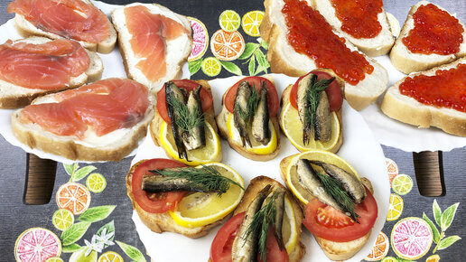 Бутерброды на праздничный стол. Икра. Семга. Шпроты. От Лара готовит.