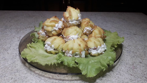 Профитроли с рыбой, сыром и орешками - отличная замена бутербродам на праздничный стол
