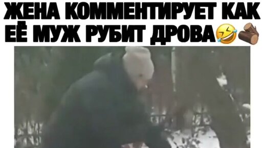 Жена комментирует, как её муж рубит дрова