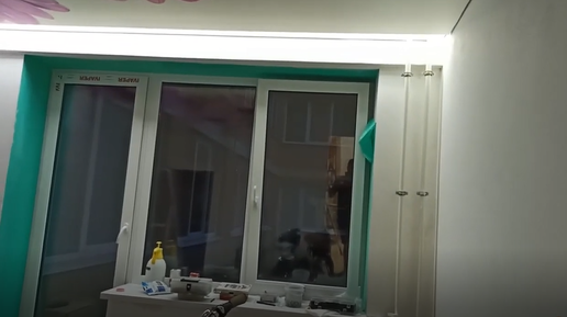 Показываю как я реализовал подсветку штор над балконным окном в детской комнате