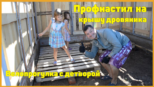 Профнастил на крышу дровяника. Половой вопрос решен. Велопрогулка с детворой.