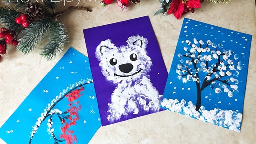Рисуем с детьми весело и необычно. Три идеи для зимних картин в одном видео. Дети будут в восторге