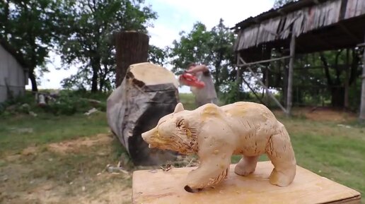 Медведь из дерева РЕАЛЬНОГО РАЗМЕРА, резьба по дереву бензопилой