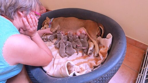 В этот день у нас родилось 20 щенков! Такого у нас еще не было! Первый день жизни щенков.