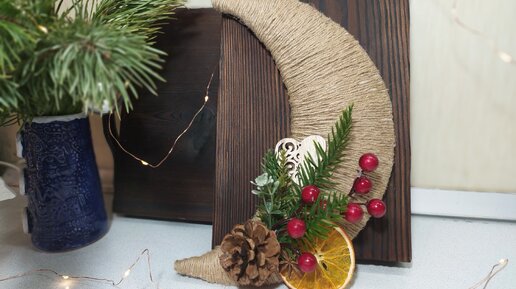 Стильное новогоднее украшение в эко-стиле из коробок из-под пицции и декора из Фикс-Прайс