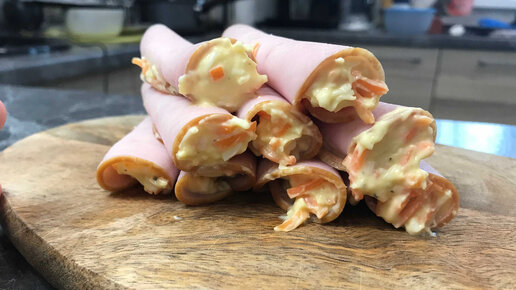 Закуска на праздничный стол. Рулетики из ветчины с начинкой