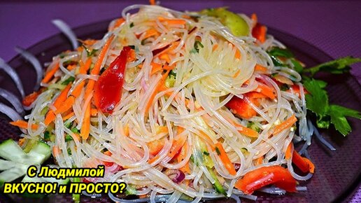 Лёгкий и очень вкусный салат с фунчозой и капустой на праздничный стол. Делать его 🤷♀️ 10 минут