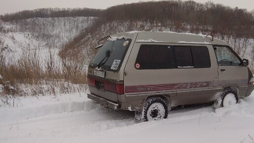 Прорываемся по снегу к заброшенному карьеру на Nissan Largo и Toyota Town Ace