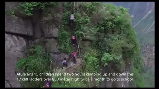 Школьники в Китае карабкаются по скале, чтоб учиться в школе!