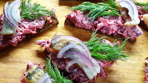 Бутерброды селёдка на шубе. Вкусная холодная закуска. Праздничный рецепт.