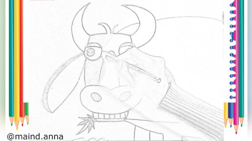 Как нарисовать прикольную морду быка за 5 минут с листом конопли в зубах