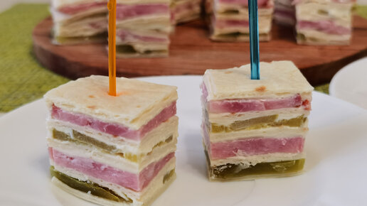 Канапе из тортильи с ветчиной и огурцами. Идеальный вариант для праздничного стола