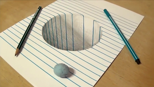 Трехмерный рисунок на листе бумаги. Оптическая иллюзия.Рисуй со мной!
