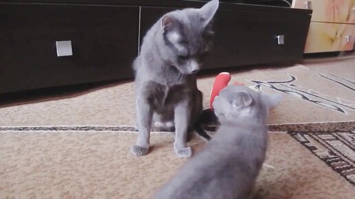 Кошка мама никогда не отказывает своему котенку поиграть с ним. Показываю это вам
