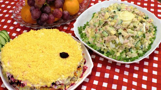 Оливье и селедка под шубой для новогоднего праздничного стола.