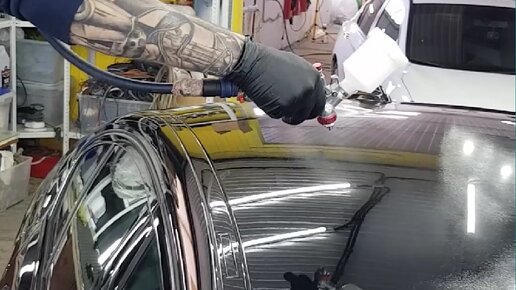 Керамический состав наносим из краскопульта, на весь кузов автомобиля.