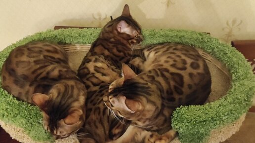 Далее: Сонные бенгальские кошечки умываются