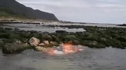 Море в огне. Феномен на берегу острова Мокко, Чили.