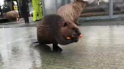 Бобёр стырил еду и пошлёпал.