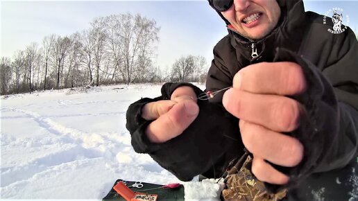 Быстро перевязываем мормышку на морозе. Показываю на льду