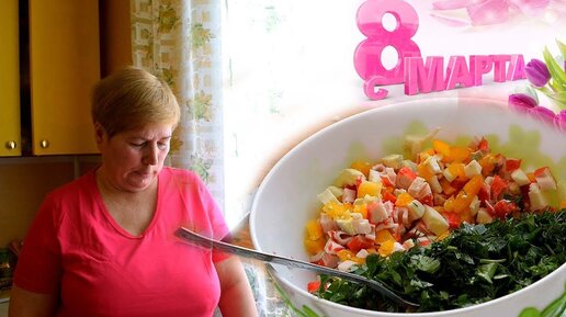 САЛАТ НА СТОЛ К 8 МАРТА С ПРАЗДНИКОМ!