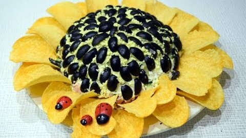 Своими руками делаем оригинальную закуску на стол. Салат ПОДСОЛНУХ