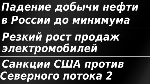 Добыча нефти в России упала до десятилетнего минимума.Санкции США.Рост продаж электромобилей на 198%