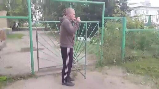 Гопник катается на турникете.