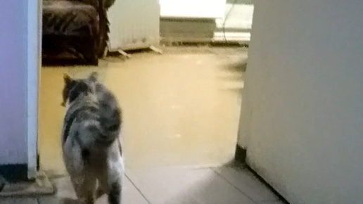 Кошка Мила таскает живых рыбёшек под стол, чтобы съесть их там.