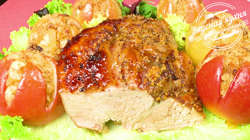 Свиной окорок запеченный с фаршированными яблоками (блюдо для Рождественского стола)