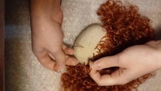 Как крепить магазинные кудри к вязаной голове куклы