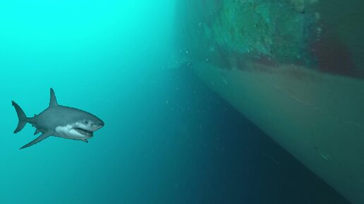 Показываю подводный осмотр судна (танкер) водолазами в Восточно-Китайском море вблизи от порта Чжоушань, Китай