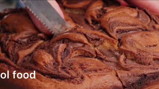 Приготовил очень простой пирог. Перемешал нутеллу с тестом и поместил все в духовку.