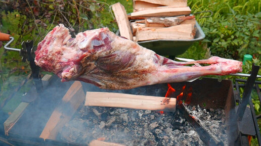 Рецепт баранины на углях. Готовлю баранью ногу на вертеле.