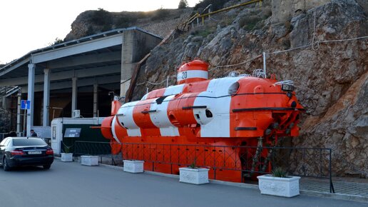 Глубоководный спасательный аппарат и вход в подземное укрытие для подводных лодок в Балаклаве.