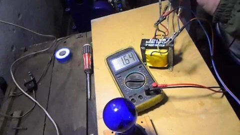 Как я подключаю любой трансформатор в сеть 220 вольт через синюю лампу.