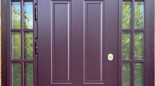 Входная дверь в коттедж нестандартного размера в широкий дверной проем.