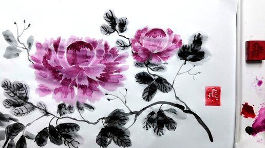 Рисую пион-символ женского начала богатства и процветания. 3 приёма и картина готова