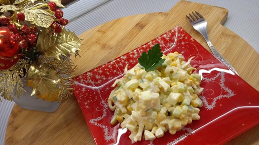 Салат с кальмарами и кукурузой. Делюсь рецептом.