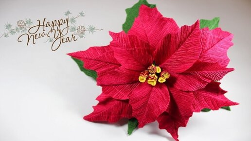 Пуансеттия из гофрированной бумаги | Цветок РОЖДЕСТВЕНСКАЯ ЗВЕЗДА из бумаги