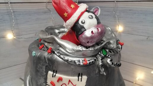 Новогодний торт-мешок с подарками и милым бычком (часть 1)