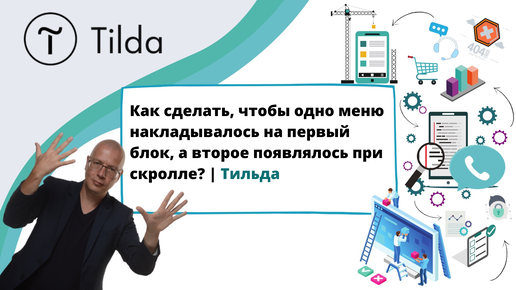 Как сделать, чтобы одно меню накладывалось на первый блок, а второе появлялось при скролле? | Тильда