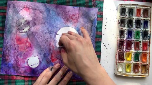Показываю как нарисовать Космос акварелью. Уроки рисования для начинающих.