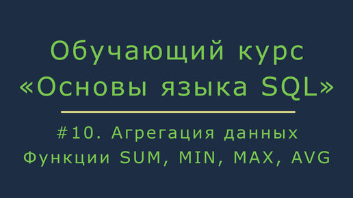 #10. Агрегация данных в SQL. Функции SUM, MIN, MAX, AVG