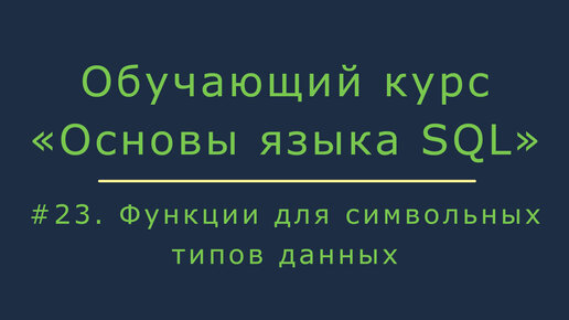 #23. Функции SQL для символьных типов данных (LOWER, UPPER, INITCAP, LENGTH, CHR, CONCAT, TRIM, TRANSLATE, REPLACE, INSTR, SUBST