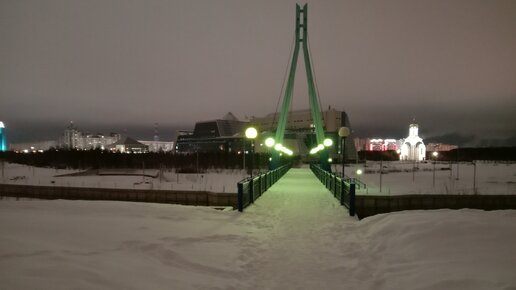 Газпром слева, университет прямо. Идём по подвесному мосту