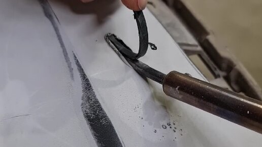 Счищаем чужую шпаклевку и нормально ровняем бампер на пластике! Также завариваем разрыв