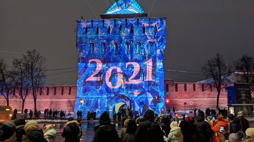 Новогодний медиафасад Дмитриевской башни нижегородского кремля